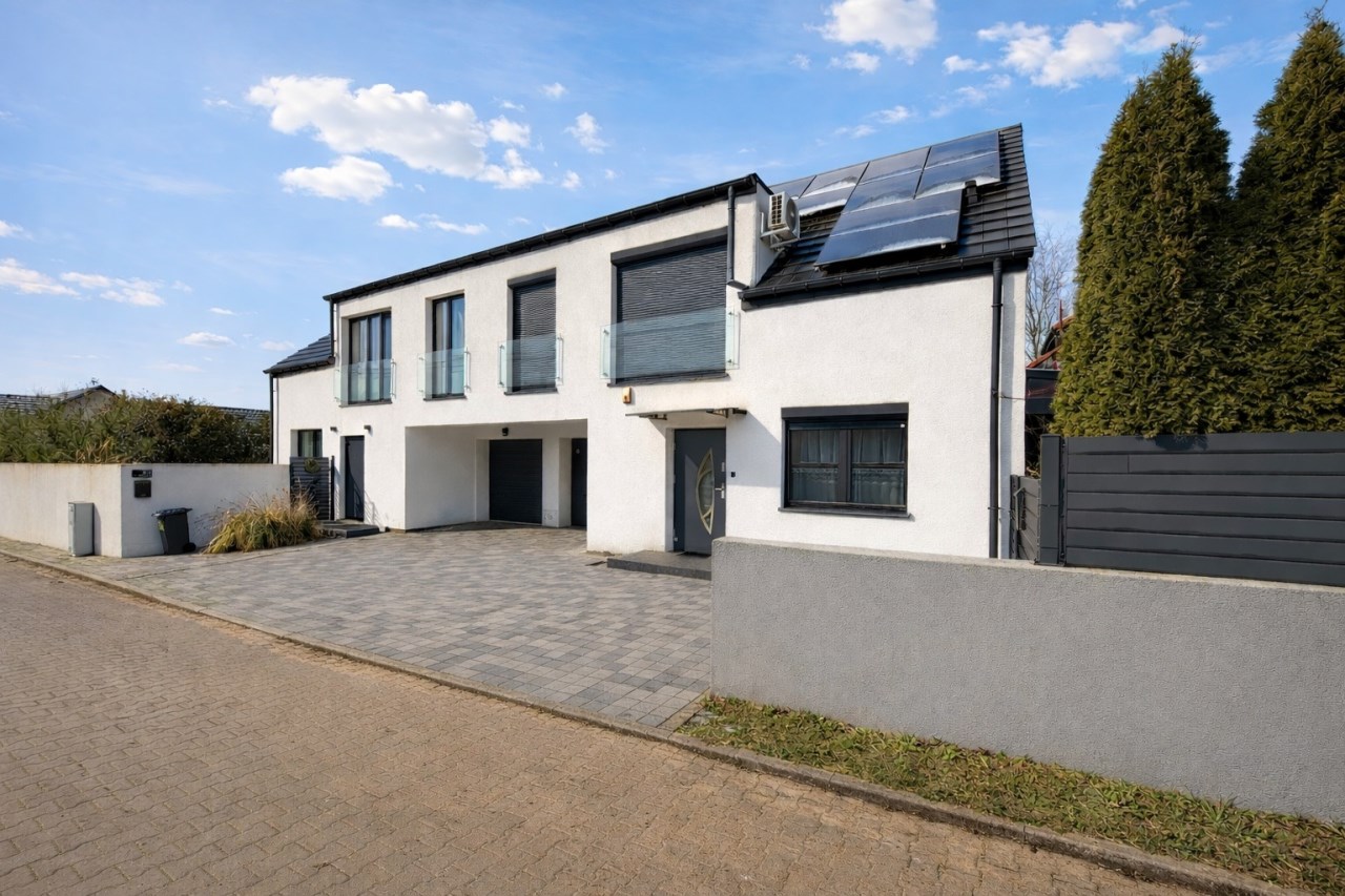 Na dachu zamontowana instalacja fotowoltaiczna o mocy 4,6 kWp, rozliczana na korzystnych, „starych zasadach”. To realnie obniża koszty energii elektrycznej przez cały rok. Falownik jest przygotowany do rozbudowy instalacji o dodatkowe 3 kWp.