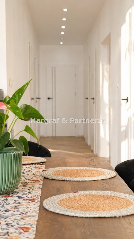 Dzień toczy się spokojnie. Trzy pokoje dają swobodę — każdy może mieć tu swoją przestrzeń. Jedno pomieszczenie zamienia się w sypialnię, inne w gabinet, jeszcze inne w pokój dla dzieci. Dwie łazienki sprawiają, że codzienność nie wymaga kompromisów. Wszystko jest nowe, dopracowane i gotowe — nie trzeba nic poprawiać, nic planować. Po prostu żyć.