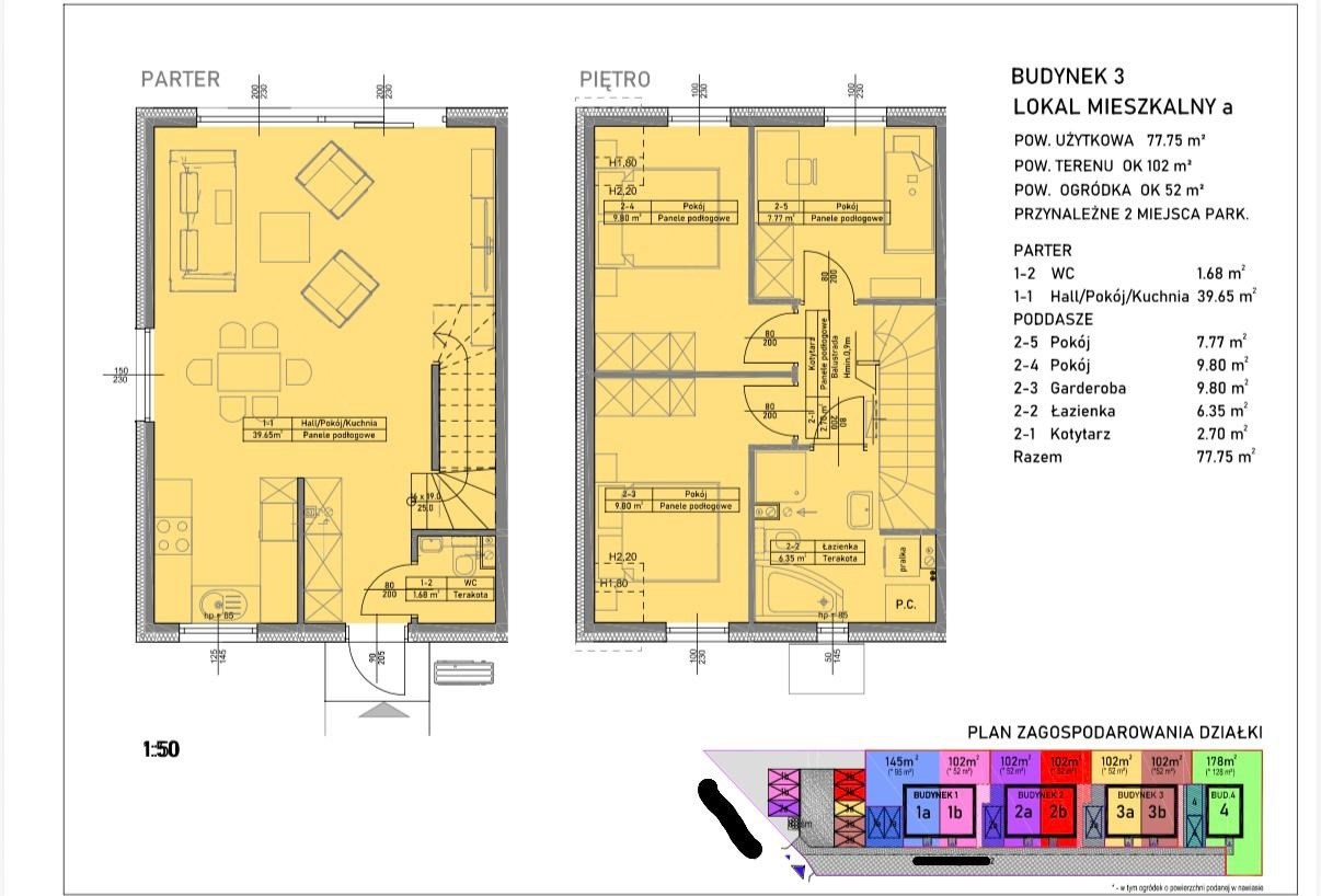 • powierzchnia działki do wyłącznego korzystania: ok. 102–103 m²