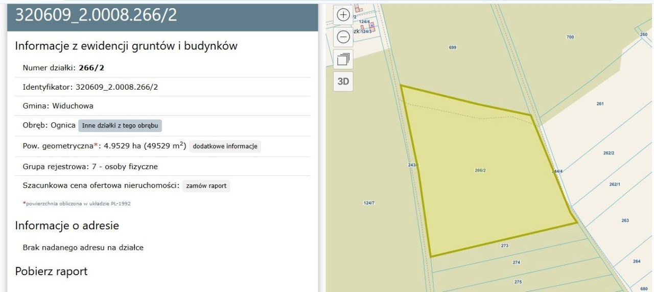 Na sprzedaż atrakcyjna działka gruntowa o powierzchni 4,9529 ha (49 529 m²), położona w miejscowości Ognica, gmina Widuchowa, województwo zachodniopomorskie.