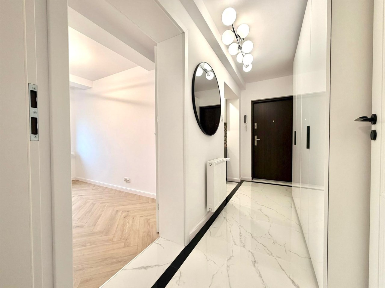 Wnętrze zostało zaprojektowane w nowoczesnym, minimalistycznym stylu z eleganckimi akcentami. Jasna kolorystyka optycznie powiększa przestrzeń, a wysokiej jakości materiały wykończeniowe podkreślają klasę nieruchomości. Zabudowa kuchenna wykonana na wymiar, połyskujące fronty, drewniany blat oraz starannie dobrane detale tworzą efekt premium. To mieszkanie, które realnie wyróżnia się standardem na tle konkurencji.