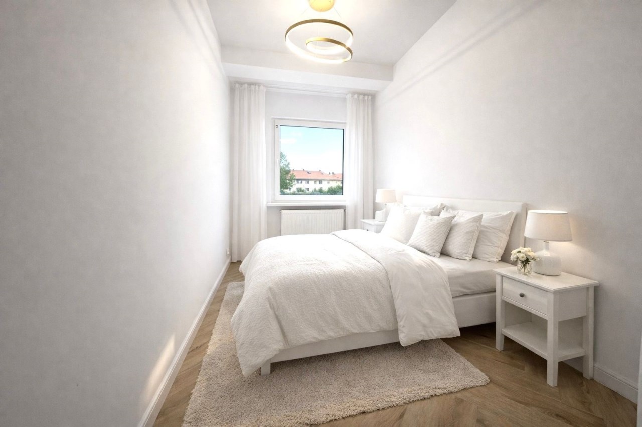 Wnętrze zostało zaprojektowane w nowoczesnym, minimalistycznym stylu z eleganckimi akcentami. Jasna kolorystyka optycznie powiększa przestrzeń, a wysokiej jakości materiały wykończeniowe podkreślają klasę nieruchomości. Zabudowa kuchenna wykonana na wymiar, połyskujące fronty, drewniany blat oraz starannie dobrane detale tworzą efekt premium. To mieszkanie, które realnie wyróżnia się standardem na tle konkurencji.