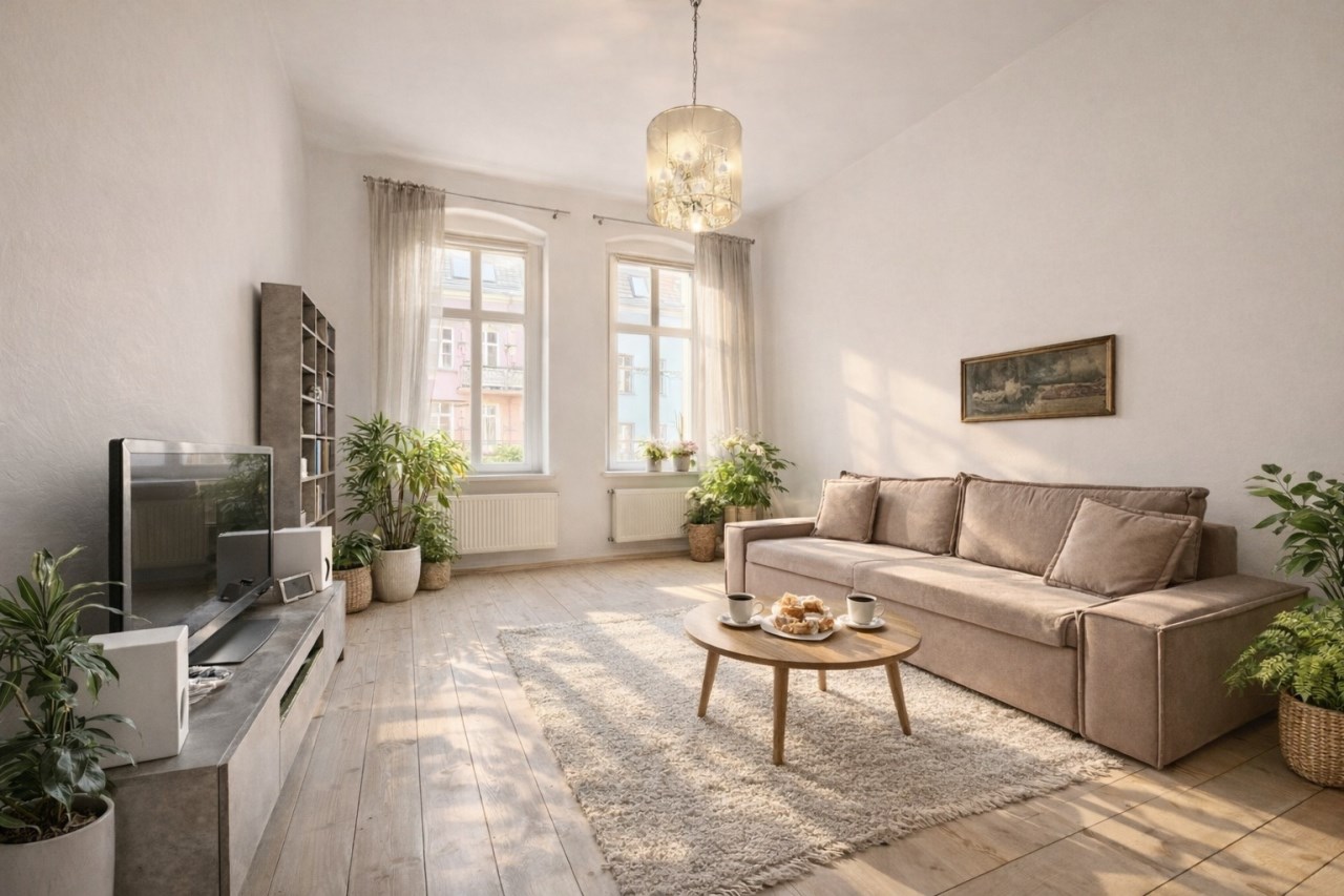 Na sprzedaż przestronne 4-pokojowe mieszkanie o powierzchni 92,7 m², położone na 2. piętrze odrestaurowanej kamienicy w centrum miasta.