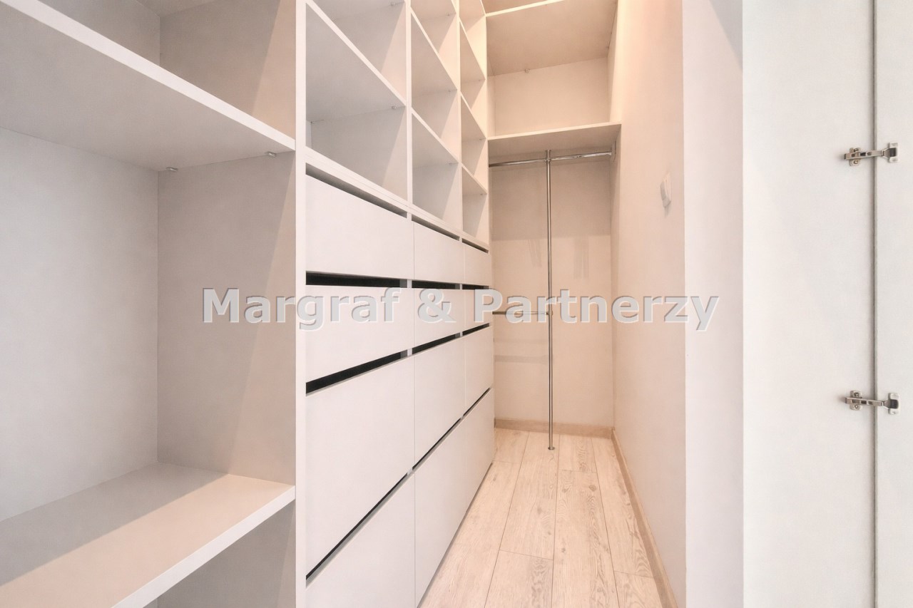 Kuchnia w pełni wyposażona (zmywarka, piekarnik, płyta gazowa, filtr wody RO). W sypialni duża garderoba. Antywłamaniowe drzwi, wideodomofon, monitoring klatki.