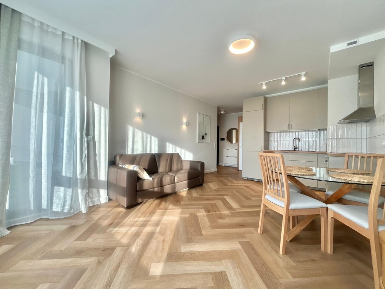 Mieszkanie jest w pełni umeblowane i wyposażone w sprzęt AGD: płyta indukcyjna, piekarnik elektryczny, zmywarka, lodówka z zamrażarką, pralka oraz trzy duże szafy.