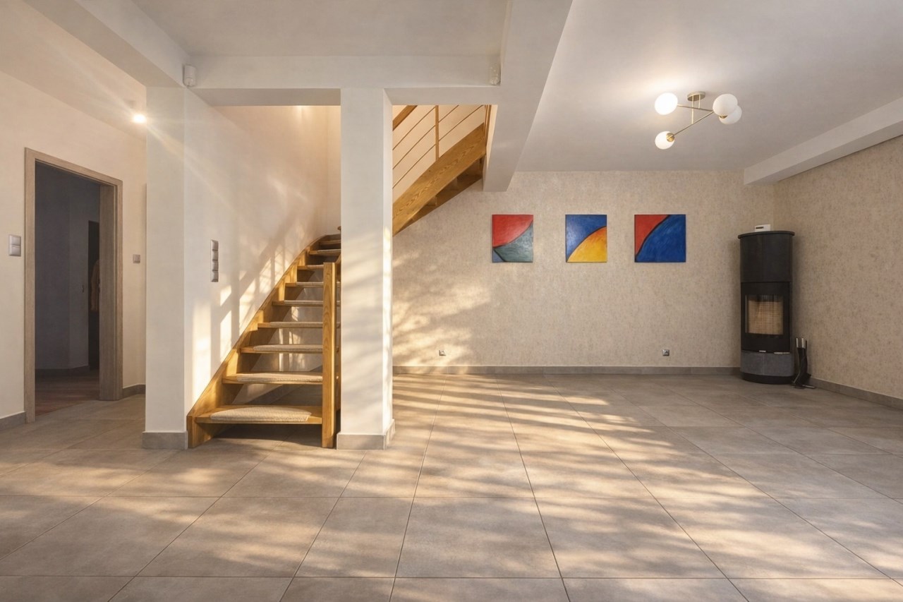 Na dachu zamontowana instalacja fotowoltaiczna o mocy 4,6 kWp, rozliczana na korzystnych, „starych zasadach”. To realnie obniża koszty energii elektrycznej przez cały rok. Falownik jest przygotowany do rozbudowy instalacji o dodatkowe 3 kWp.