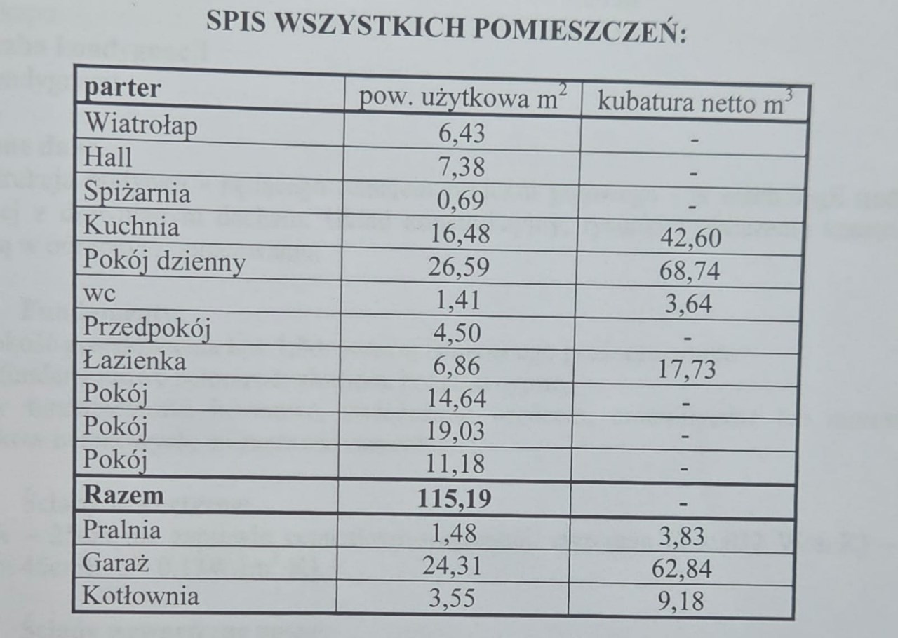 -Powierzchnia całkowita (z garażem i kotłownią): ok. 143 m²