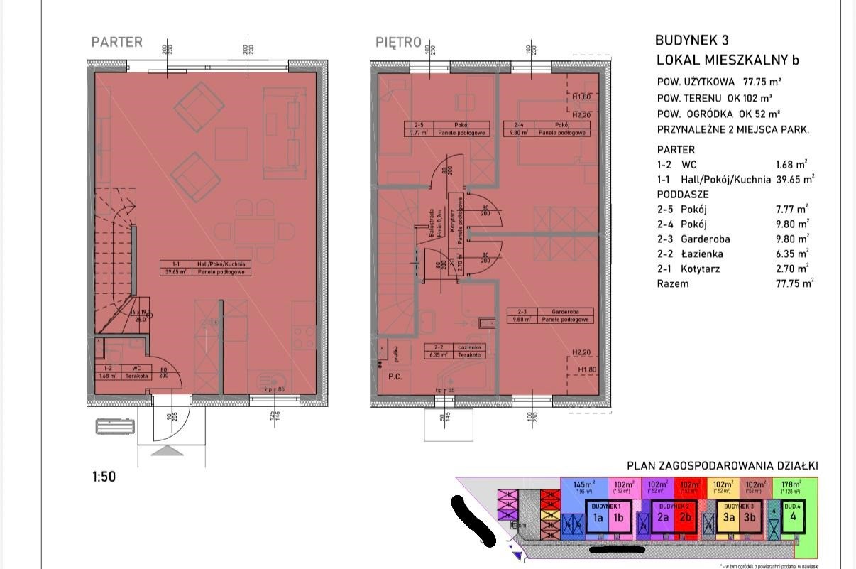 • powierzchnia działki do wyłącznego korzystania: ok. 102–103 m²
