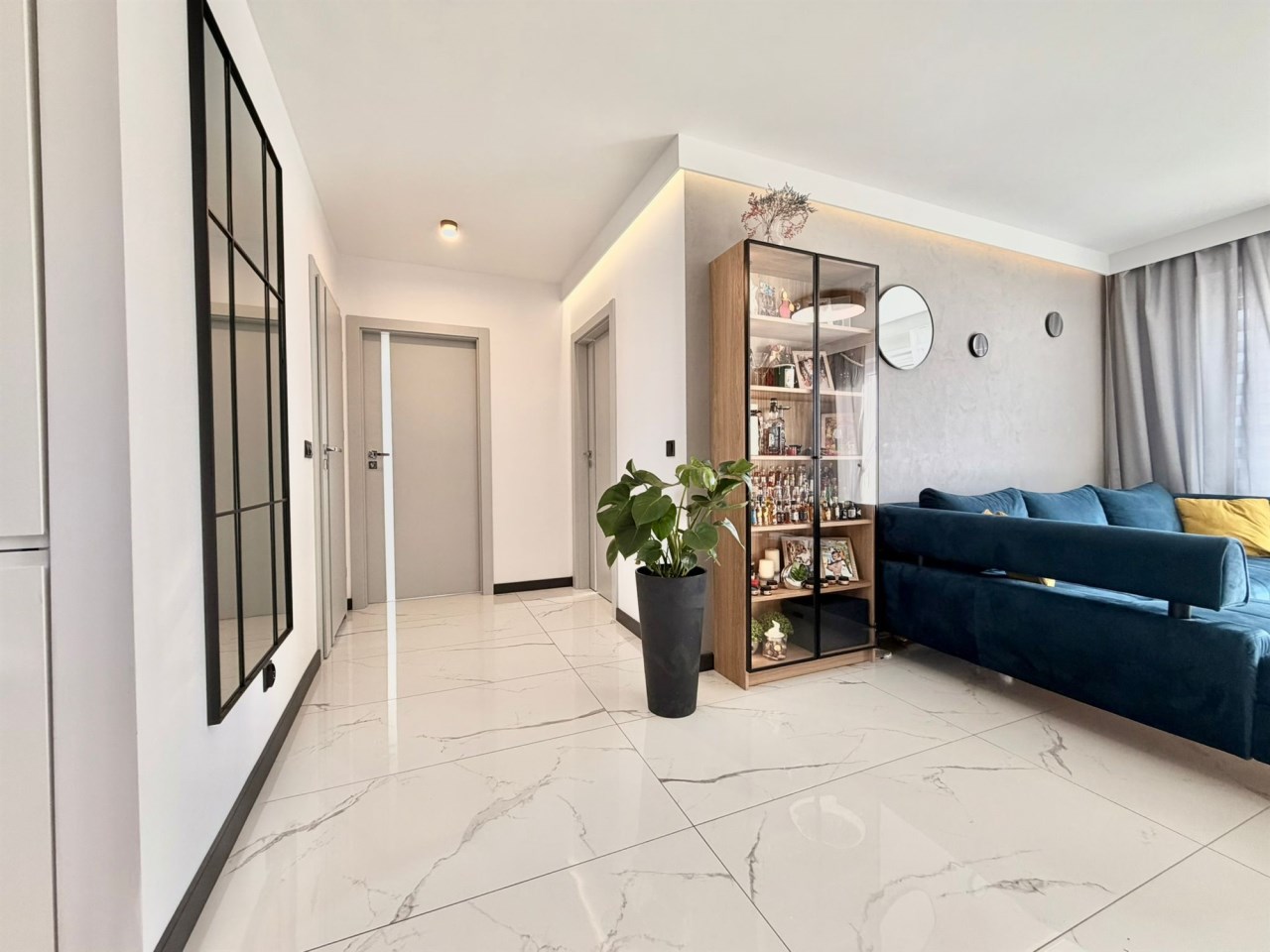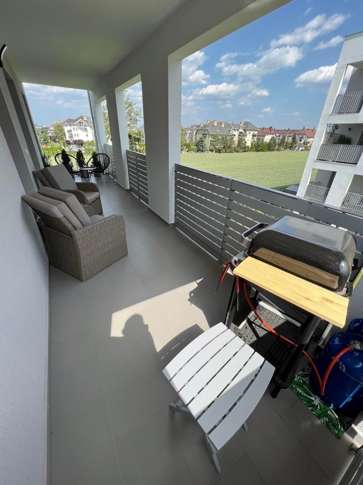 Wnętrze wykończone w wysokim standardzie: zabudowy na wymiar, kuchnia z pełnym AGD, beton strukturalny, lamele, gres w salonie, oświetlenie LED oraz drzwi wykonywane na zamówienie. Budynek z dużą windą, do dyspozycji mieszkańców wózkownia.